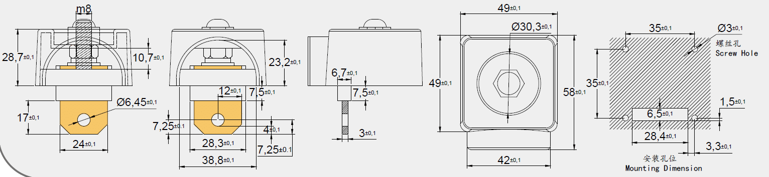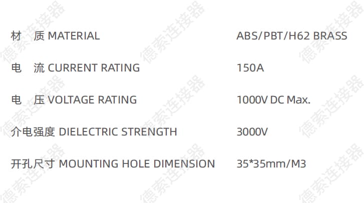 料号: DS-FM8-EB-48-3M(黄铜鼻) 标签: 3500W大电流,电池低压接线柱 其他: 提供尺寸、材质调整服务(定制打样)