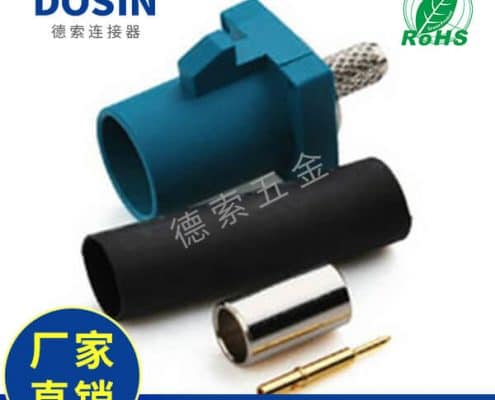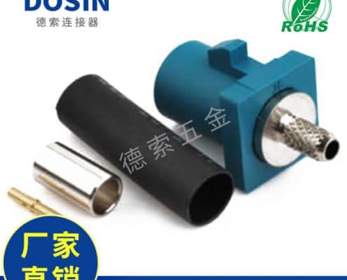 Fakra-SMB连接器Z型公头水蓝色压接焊接汽车天线接线RG316-RG174 定制打样