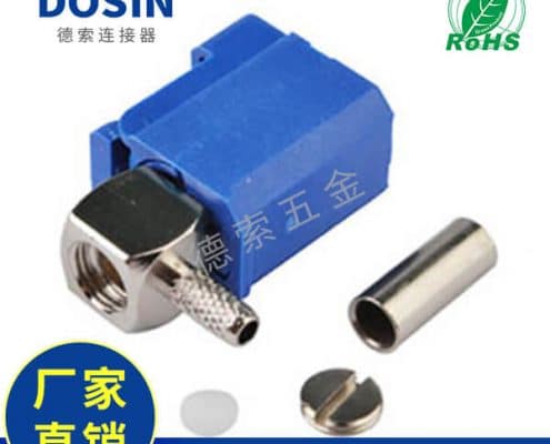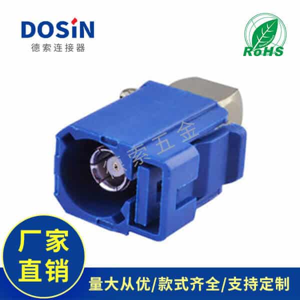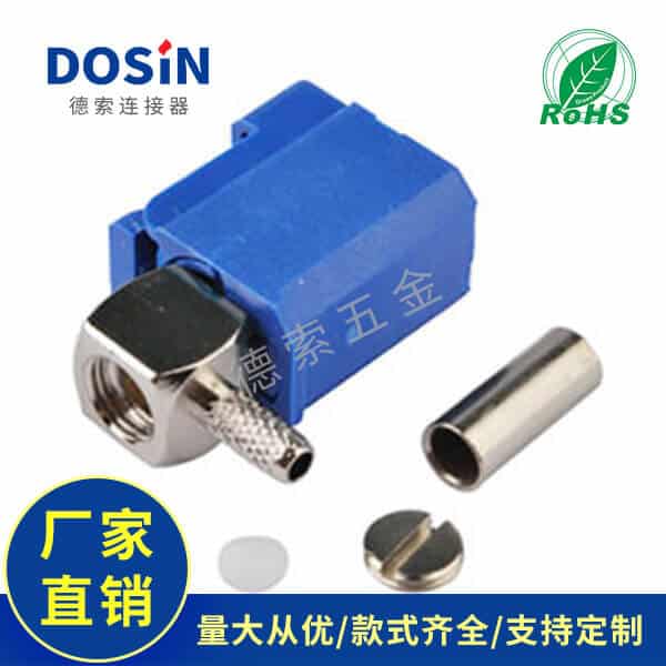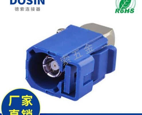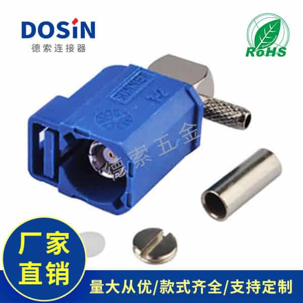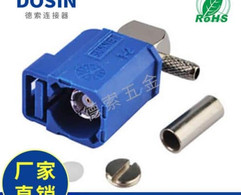 Fakra连接器母头塑料外壳C型弯式蓝色压接焊接接线RG174-RG316连接器定制打样