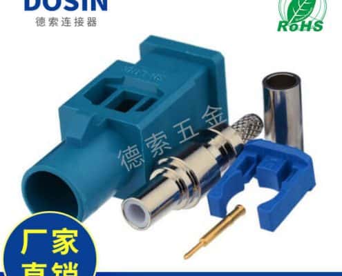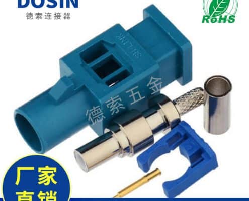 Fakra直头连接器Z型公头水蓝色焊接压接接线RG174 RG316C汽车天线用连接器制造厂商