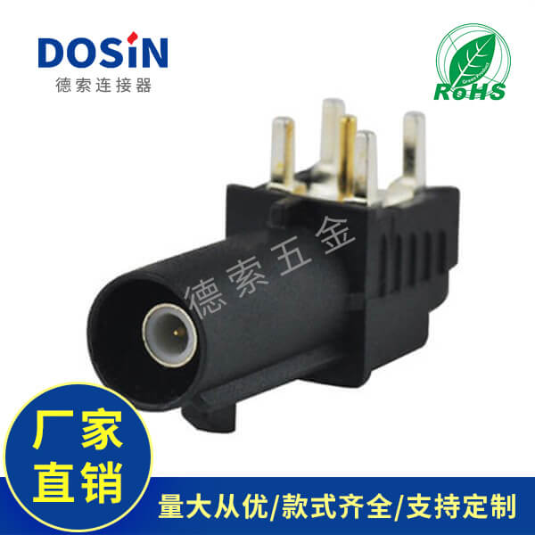 Fakra连接器PCB板安装A型弯式公头RF系列黑色卫星收音机WIFI用连接器厂商直销