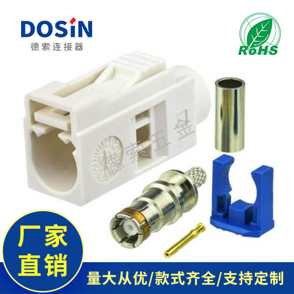 Fakra连接头母头B型白色压接接线RG316-RG174汽车音响用连接器生产工厂