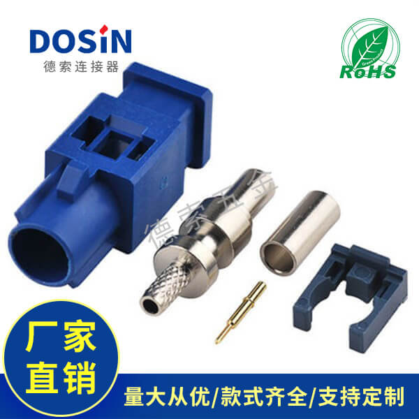 车用Fakra-C公蓝色压接焊接连接器用于汽车GPS天线RG316-RG174加工厂商