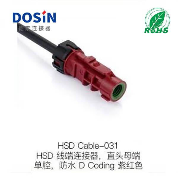 HSD线端连接器直头母端单腔防水D-Coding紫红色生产工厂